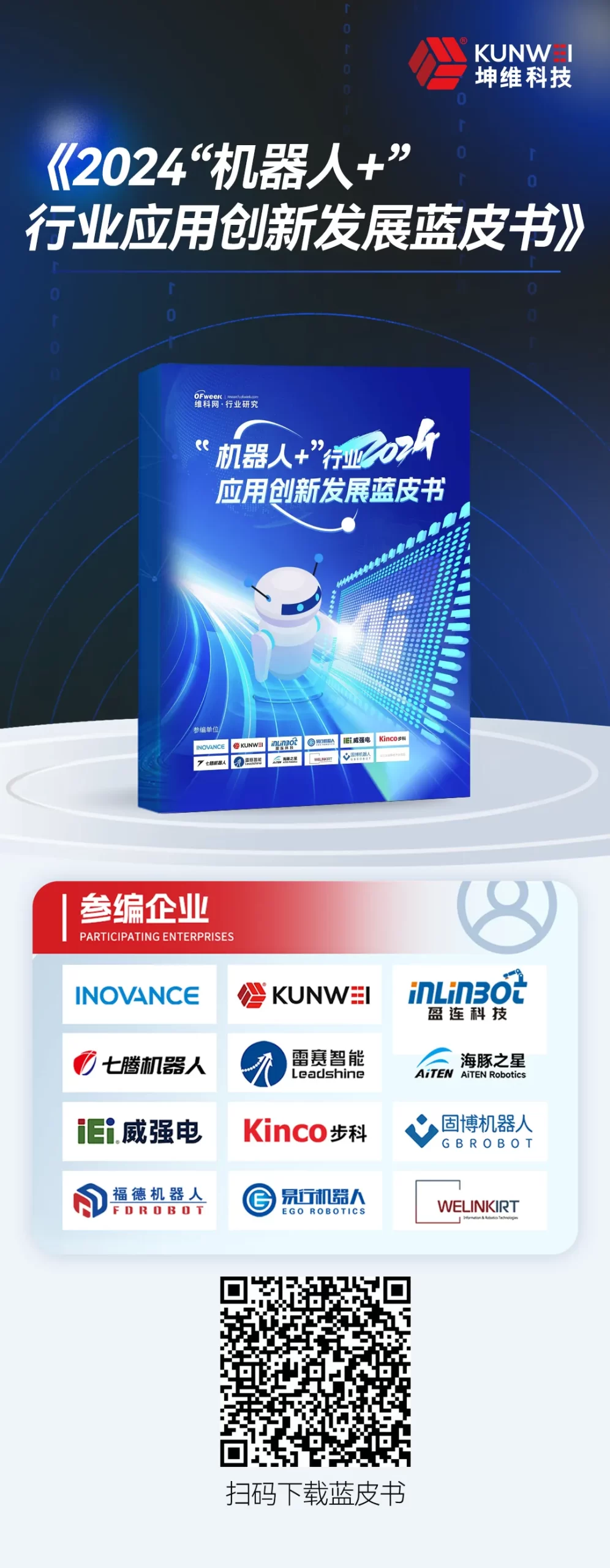 最近、 2024 年 "机器人+"行业应用创新发展蓝皮书 由 OFweek 行业研究中心主办、英诺文思等公司联合编辑的《OFweek 行业研究报告》已正式对外发布、 昆为科技这些公司包括:Inlinbot、Sevnce、Leadshine、AITEN Robotics、IEI Integreation Corp、Kinco、GBROBOT、EGO ROBOTICS 和 FDROBOT。